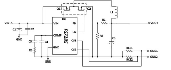 FS7285是固定頻率PWM 降壓DC-DC 轉換器,該電路應用簡單,外部元器件比較少雙路獨立過流保護可調,過溫度保護,內置輸出線補,易過EMI。