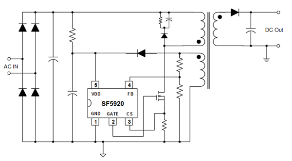 SF5920是高精度原邊反饋控制(PSR)的恒壓恒流(CV/CC)控制器。該系列驅動外部功率MOS管,非常適合低成本小功率充電器、適配器、和LED照明場合。