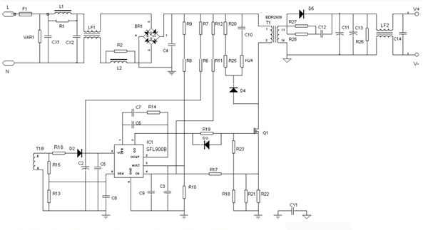SFL900是采用業內首創的“super-PFC/PSR”控制架構,同時支持原邊反饋(psr)和次級光耦反饋(SSR)適用于隔離LED照明場合,該系列應用在PSR場合可以實現5%以內的恒流精度,10%以內的THD和高PF值。SFL900的管腳布局兼容主流的PFC芯片XX6562/X7527的腳位,大大增加了應用的靈活性,該芯片內置“軟啟動”和“反饋網絡清零控制”大大降低啟動電流過沖,SFL900內置專利的“Min-THDTM"技術,大大降低了THD,同時內置90KHZ鉗頻,相對于臨界導通模式而言,系統EMI性能大大改善。SFL900還集成了諸多保護功能,比如:VCC欠壓保護(UVLO),VCC過壓保護,逐周期過流保護,GATE辦輸出電壓鉗位保護,LED短路打嗝保護,LED開路保護,軟驅動,SFL900提供SOP8和DIP8封裝。