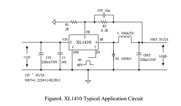 XL1410是一款高效, PWM 降壓型DC-DC轉(zhuǎn)換換器固定380KHz開關(guān)頻率,可提供高達(dá)2A輸出電流能力。XL1410具有低紋波,出色的線性調(diào)整率和負(fù)載調(diào)整率。只有少量的外圍元件內(nèi)置了頻率補(bǔ)償電路和固定頻率振蕩器,簡(jiǎn)化了電路設(shè)計(jì)。