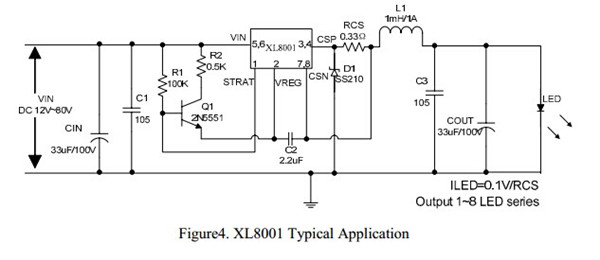 XL8001是高電壓與led驅(qū)動(dòng)器12V~80V寬電壓輸入開關(guān)式降壓LED恒流驅(qū)動(dòng)電源。