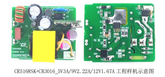 CR5168SK+CR3016_20w快充頭方案可根據被充電設備USB信號調節5V/9V/12V輸出電壓。AC230V輸入待機功耗55mW,平均效率>87.35%,體積大小僅為 48mm*40mm*18mm,在同類產品中成本低廉,貨源充足,更多產品手冊及應用資料請向驪微電子申請。>>