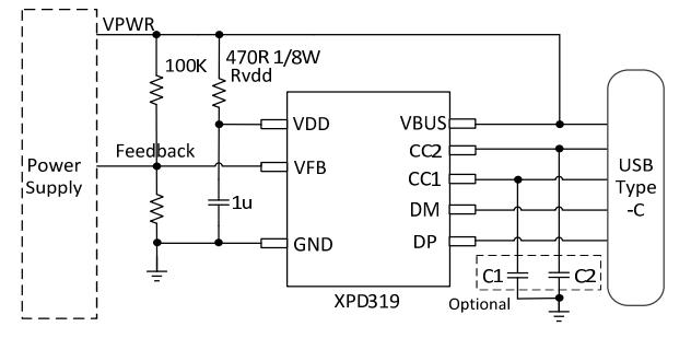 XPD319 USB Type-C PD 多協議控制器是一款集成 USB Type-C、USB Power Delivery(PD3.0)以及 PPS、QC3.0+/QC3.0/QC2.0 快充協議、華為 FCP 快充協議、三星 AFC 快充協議、BC1.2 DCP以及蘋果設備 2.4A 充電規范的多協議端口控制器,為 AC-DC 適配器、車載充電器等設備提供高性價比的 USB Type-C 端口充電解決方案。