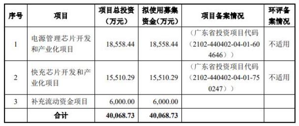 英集芯此次擬公開發行股票數量不超過4200萬股,不低于發行后公司總股本的10%,IPO擬募資4.01億元,將用于電源管理芯片開發和產業化項目、快充芯片開發和產業化項目以及補充流動資金項目。