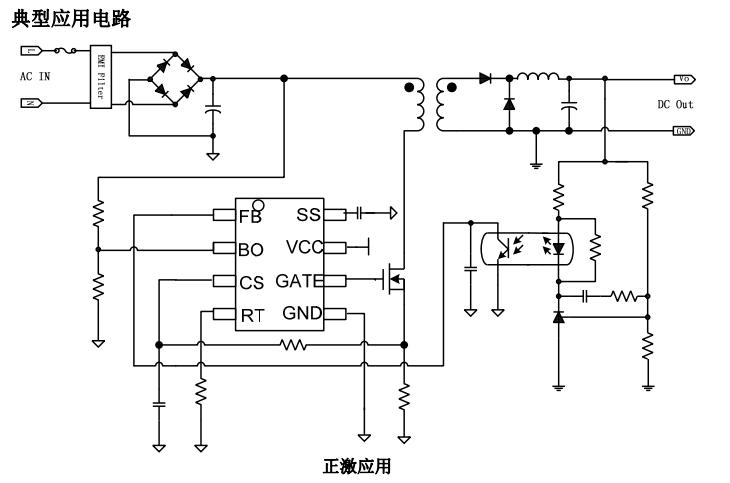 線電壓欠壓保護(hù):線電壓欠壓保護(hù)通過(guò)監(jiān)控 BO 引腳上的電平,控制器可以保護(hù)正轉(zhuǎn)換器免受低輸入電壓條件的影響。 當(dāng) BO 引腳電平低于 VBO電平時(shí),控制器停止脈沖,直到輸入電平恢復(fù)正常,并通過(guò)新的軟啟動(dòng)順序恢復(fù)運(yùn)行。欠壓比較器具有固定的比較電壓(VBO)。當(dāng) BO 引腳低于內(nèi)部電壓(VBO)時(shí),通過(guò)使用連接在 BO 引腳和地之間的內(nèi)部電流實(shí)現(xiàn)遲滯。