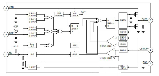SD4873A內(nèi)部集成了各種異常狀態(tài)保護(hù)功能,包括內(nèi)置和外部可設(shè)的VDD過(guò)壓保護(hù)、前沿消隱、逐周期峰值限流、輸出過(guò)壓保護(hù)、過(guò)載保護(hù)、內(nèi)置和外部可設(shè)的OTP過(guò)溫保護(hù)等,其廣泛應(yīng)用于充電器、適配器、機(jī)頂盒電源等!