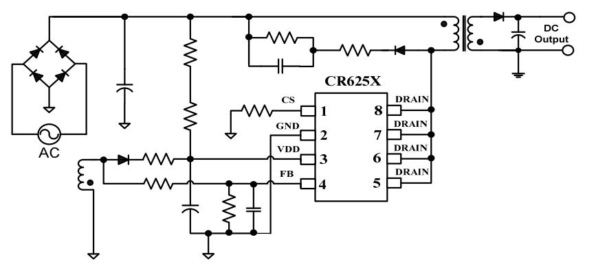 CR6259集成了多種功能和保護特性,包括欠壓鎖定(UVLO),VDD過壓保護(OVP),軟啟動,過溫保護(OTP),逐周期電流限制(OCP),CS引腳懸空保護,輸出短路保護,內置前沿消隱電路,使得芯片具有更高的可靠性。